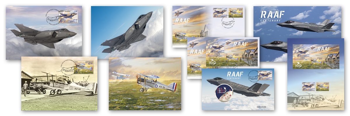 Australia Post is helping mark Air Force's milestone with a range of stamps, postcards and first day covers.