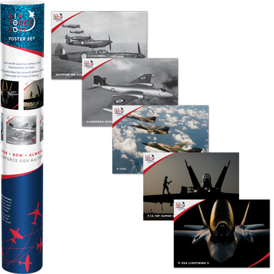 Six iconic aircraft from Air Force’s past and present are represented with artwork by Drew Harrison, one of Australia’s leading military aviation artists.