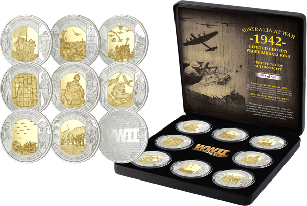 This landmark series remembers 1942, the year Australia's focus turned from the war in the northern hemisphere to the immediate threat posed to Australia by advancing Japanese forces in the Asia-Pacific. An insightful collection to tell Australia's story in 1942. Historic details included with each piece.