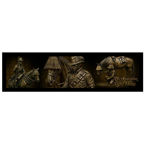Forged in battle and bound by trust, the story of the Australian Light Horse is one of courage, endurance and an unbreakable bond between soldier and horse. The One Heart, Two Souls Collection captures this extraordinary relationship through a striking range of commemorative pieces led by a finely crafted figurine that symbolises loyalty, sacrifice and shared hardship.
