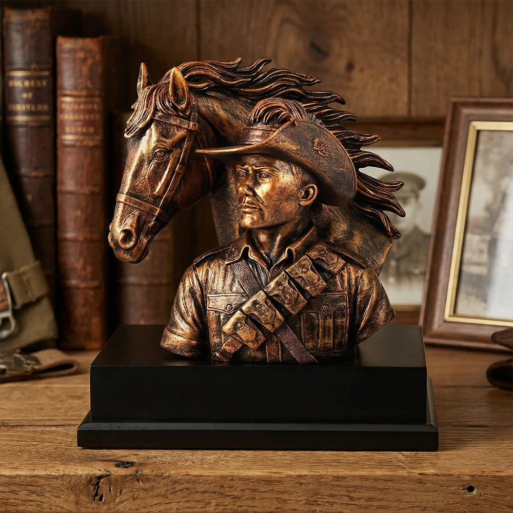 Designed as a centrepiece for home, office or commemorative display, this figurine stands as a lasting symbol of Australia’s mounted service heritage.