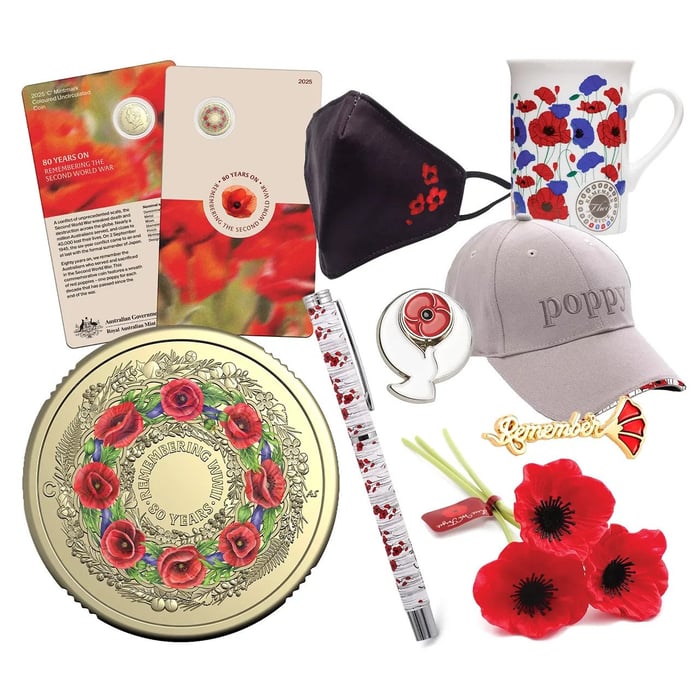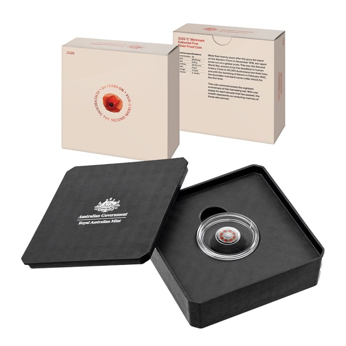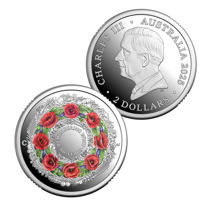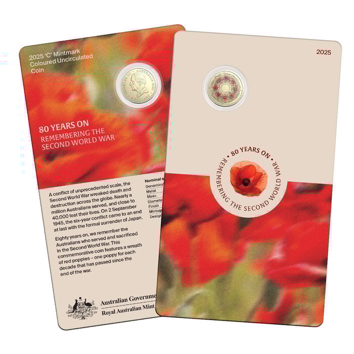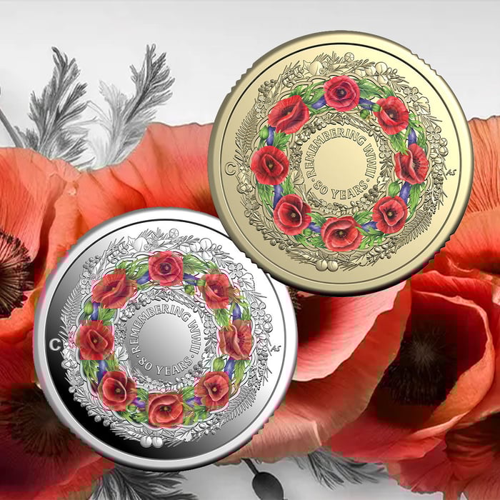 The Royal Australian Mint’s official theme, “80 Years On: Remembering the Second World War,” reflects on how the conflict reshaped our nation and the world. The poppy, already an enduring emblem of remembrance, now symbolises peace hard-won and never forgotten.