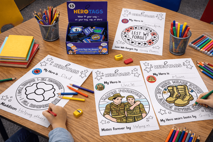 The best fundraising products for ANZAC Day school campaigns are those that are meaningful, age-appropriate and aligned with remembrance values. Products like HeroTags that double as educational tools supported with ANZAC Day colouring pages or classroom discussion materials tend to perform particularly well in Primary schools while also helping to support veterans.