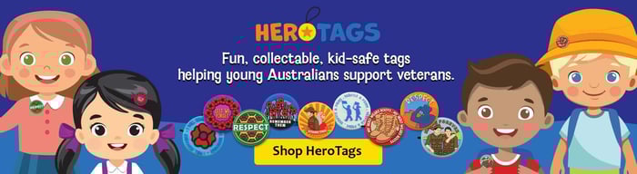 HeroTags are kid-safe, collectable tags designed to help schools teach courage, mateship, respect, remembrance and service. Each HeroTag features a real Australian service story and is designed to spark conversation, learning and reflection. The range includes 10 different designs, allowing students to collect, trade and learn about different aspects of Australian military service.
