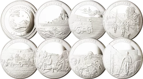 The Op Slipper commemorative range, endorsed by the Chief of Defence Force, remembers the end of Australia's longest military operation. Between 2001 and 31 December 2014 some 34,500 ADF personnel served in Afghanistan and the Middle East areas of operations. Hundreds of Australian Federal Police and other government employees also served in the areas and countless others worked tirelessly in government and industry to support those on the ground.