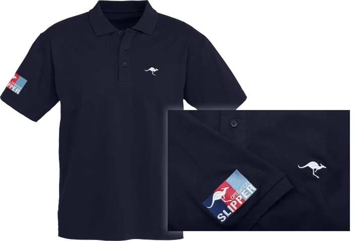 A classic Op Slipper polo shirt in 100% natural cotton. This smart yet casual polo has the Op Slipper patch embroidered on the right sleeve and an embroidered kangaroo over the left breast. Available in navy blue. Limited range of women's sizes available.