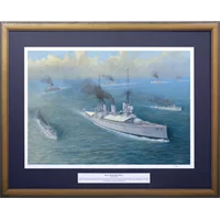 Your piece of history and pride in fleet with this truly limited edition artwork. To mark the 100th anniversary of the Royal Australian Navy’s first fleet, renowned Australian marine artist, Don Braben, has painted an outstanding artwork depicting the then fledgling Royal Australian Navy en-route to Sydney Harbour on the morning of 4 October 1913.