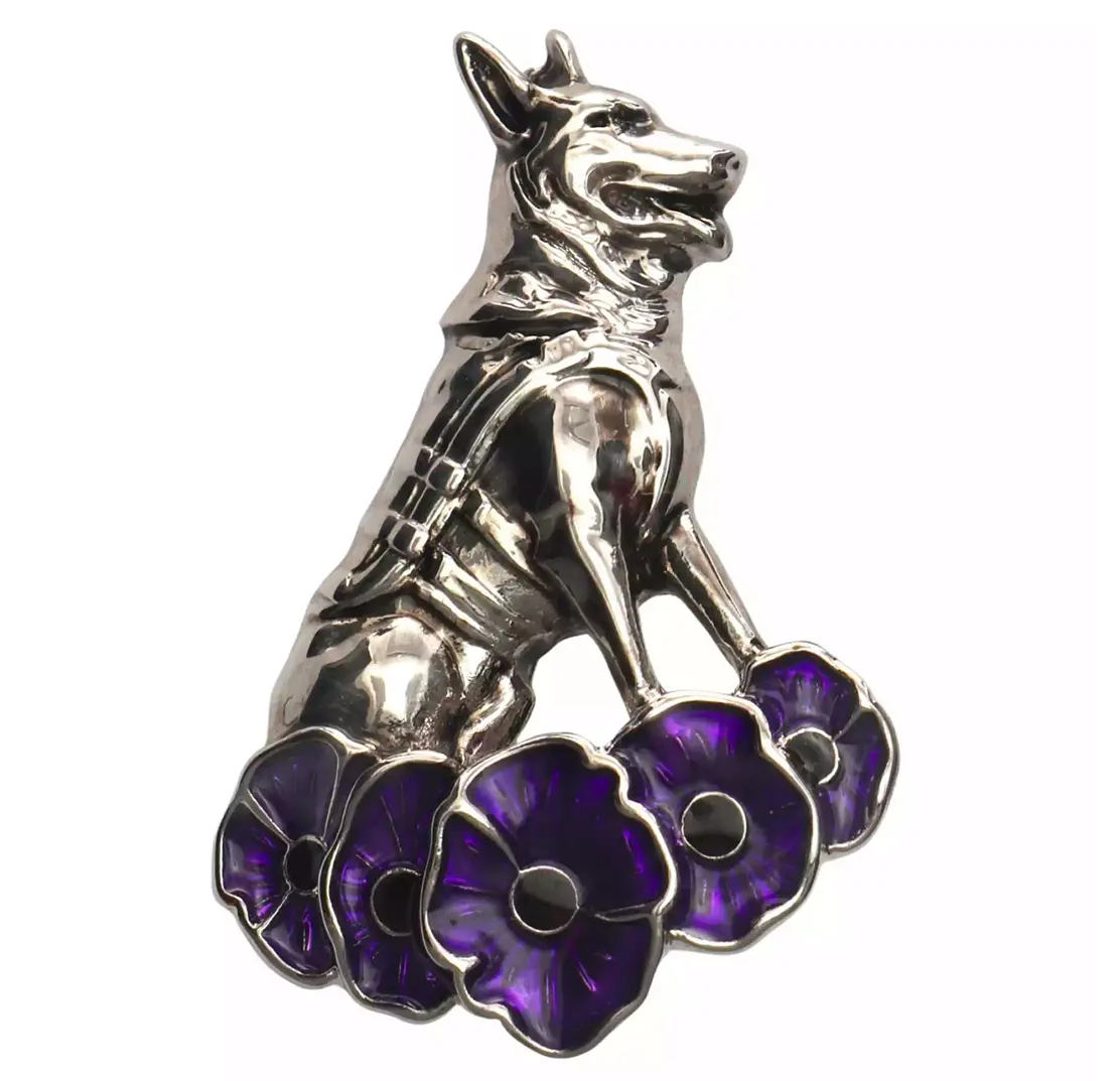 Purple Poppy, German Shepherd Brooch