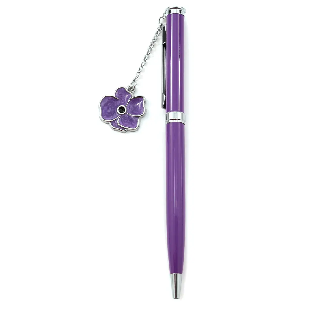 I Remember - Pen with Purple Poppy Charm